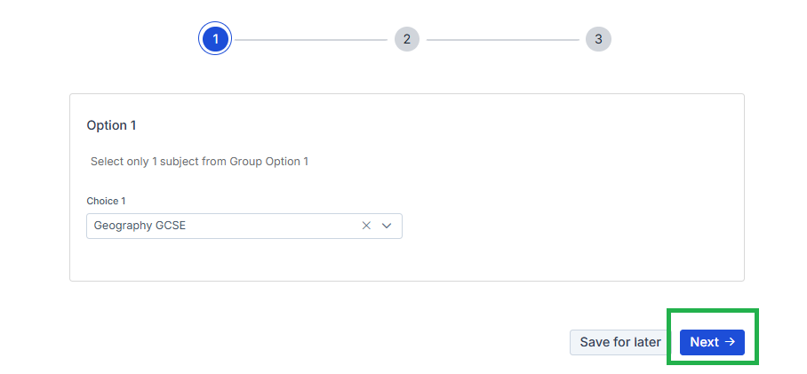 - All three options must be for different subjects and cannot continue the subject you chose for Option 1.